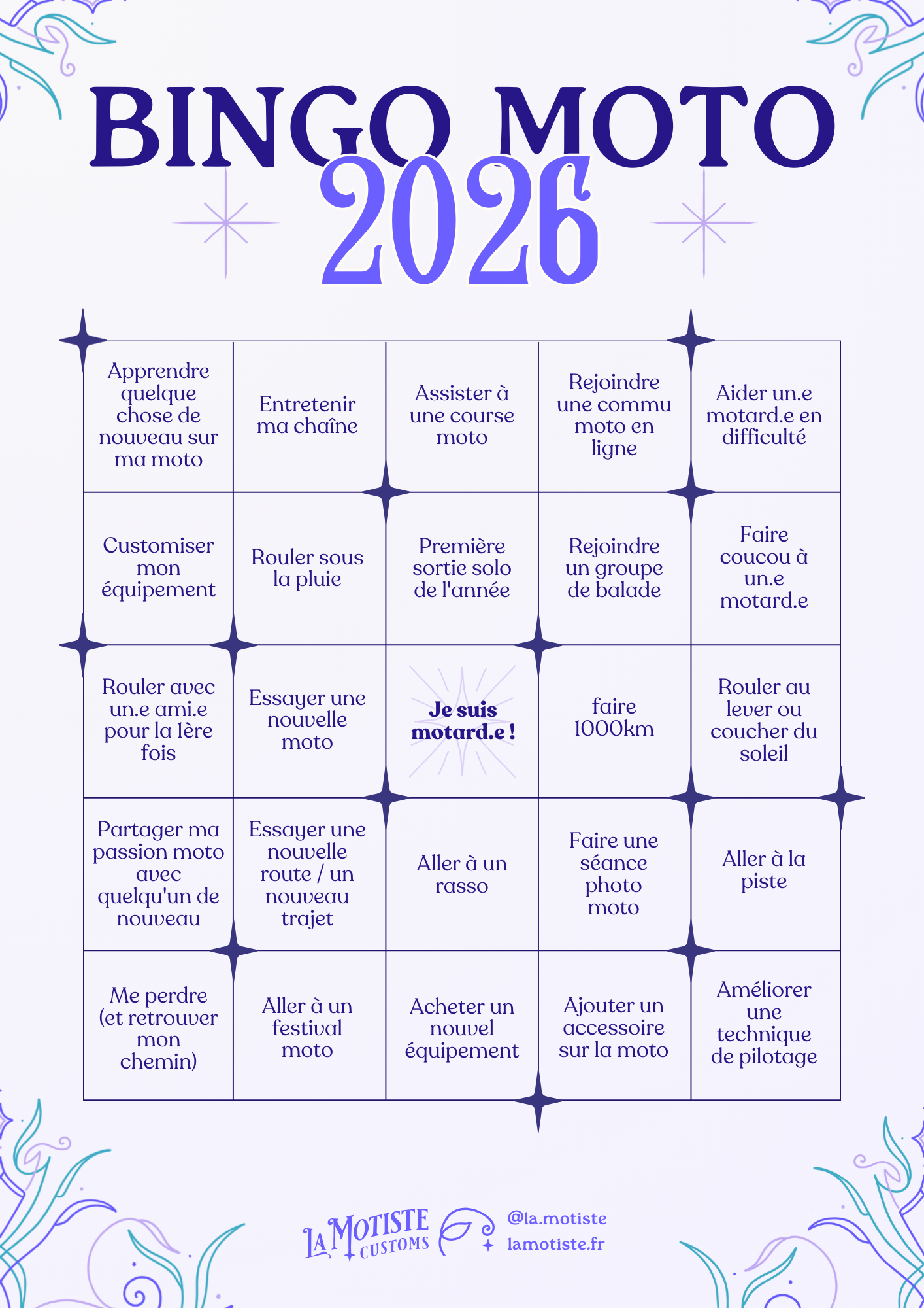 Bien plus fun qu’une liste de bonnes résolutions, le bingo moto vous suivra tout au long de l’année.